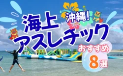 沖縄で人気の海上アスレチックを厳選して紹介!那覇空港近くから、恩納村、名護まで、子供から大人まで楽しめるおすすめスポットをまとめました。料金・年齢制限なども解説しています。
