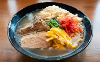 透き通ったあっさり鰹出汁に、亀浜製麺所の細平麺。シンプルに味付けされたソーキや三枚肉がのった一杯は、まさに“王道の沖縄そば”。毎日でも食べたくなる優しい味わいで、地元ファンに長く愛されています。